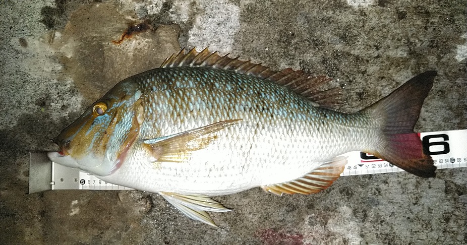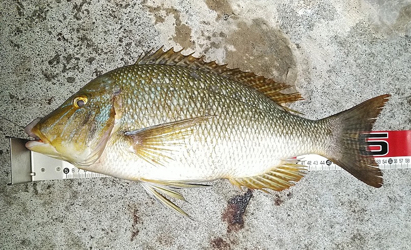 やっと、釣ることが出来ましたハマフエフキ55cm。