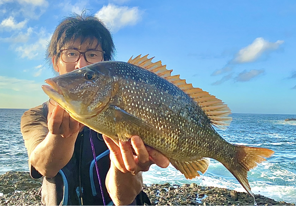 伊豆半島周辺でのハマフエフキ釣果情報は近年格段に増えた印象がある。個人的にハマフエフキを狙い始めた10年程前に比べて大きく変わった状況としては小型のハマフエフキの釣果数が多くなったと感じる。特にここ数年は手の平サイズから40cm程の若魚が10月以降にフカセ釣りなどで数多く釣られていて、年平均水温の上昇により西伊豆にすっかり定着したと考えている。私自身も2年前から釣果が上向き、周年通して西伊豆の比較的入釣しやすいポイント各所で大型のハマフエフキを釣り上げることができた。その背景があり、険しいルートを進む地磯への入釣からは遠ざかっていた