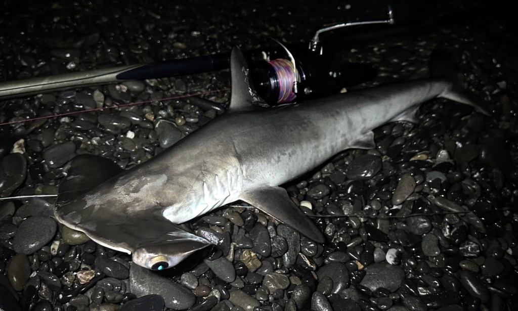 一日目の釣果に気を良くして次の夜も三保サーフで竿を出したが、二日目は80㎝の小型のハンマーヘッドと20㎝のウツボという貧果であった。
