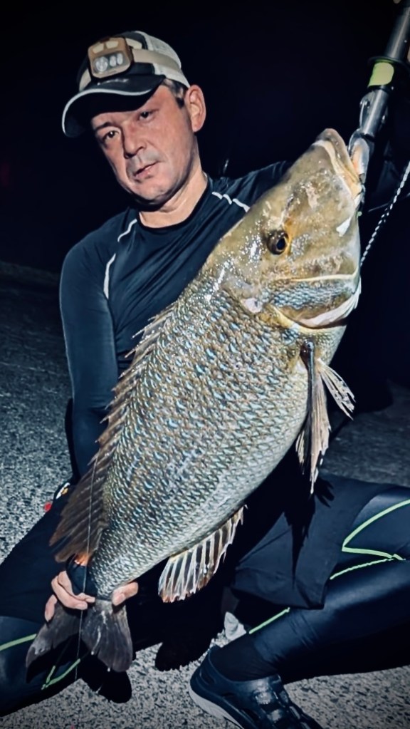 ミッドナイトキャスターズ(MNC)をご覧の皆様、初めましてチャーリーと申します。そして梶谷さんお疲れ様です。また、ご依頼頂きありがとうございます。私は横浜市内に住んでいますが、20年程前に雑誌にてМNCの存在を知りそれ以来、主に沼津エリアにてマダイをメインに投げ釣りをしていました。タマン(ハマフエフキ)に関しては、興味はあったものの、いまいちポイントが分からず、いま一歩踏み出せずにいました。それが2023年3月13日、沼津の堤防にて初めて梶谷さんと出会い、その年の7月下旬に西伊豆堂ヶ島エリアを釣りをしながら案内して頂きました。その後、田子の沖堤防で一緒に竿を出し、私自信初めての離島、大島では初対面でしたが船橋さんと政本さんと竿を出させて頂きました(その節は大変お世話になりました)。その後は主に堂ヶ島の地磯での単独釣行を繰り返し、今年は7月下旬に田子沖堤防にて56㌢を頭に3枚のタマンを、8月の下旬には堂ヶ島地磯でシブダイの41㌢を、9月11日に田子沖堤防で55㌢のタマンを釣る事が出来ました。夜釣りで翌12日に自宅へ帰り、その3日後の15〜16日まで仲間がまた行きたいと言う事で、正直私は体力的にかなり辛かったのですが2人以上でないと夜釣りは渡船してもらえないので私も行く事にしました。今回書かせて頂く内容はその時の内容になります。言葉足らずかもしれませんがどうか、宜しくお願い致します。
